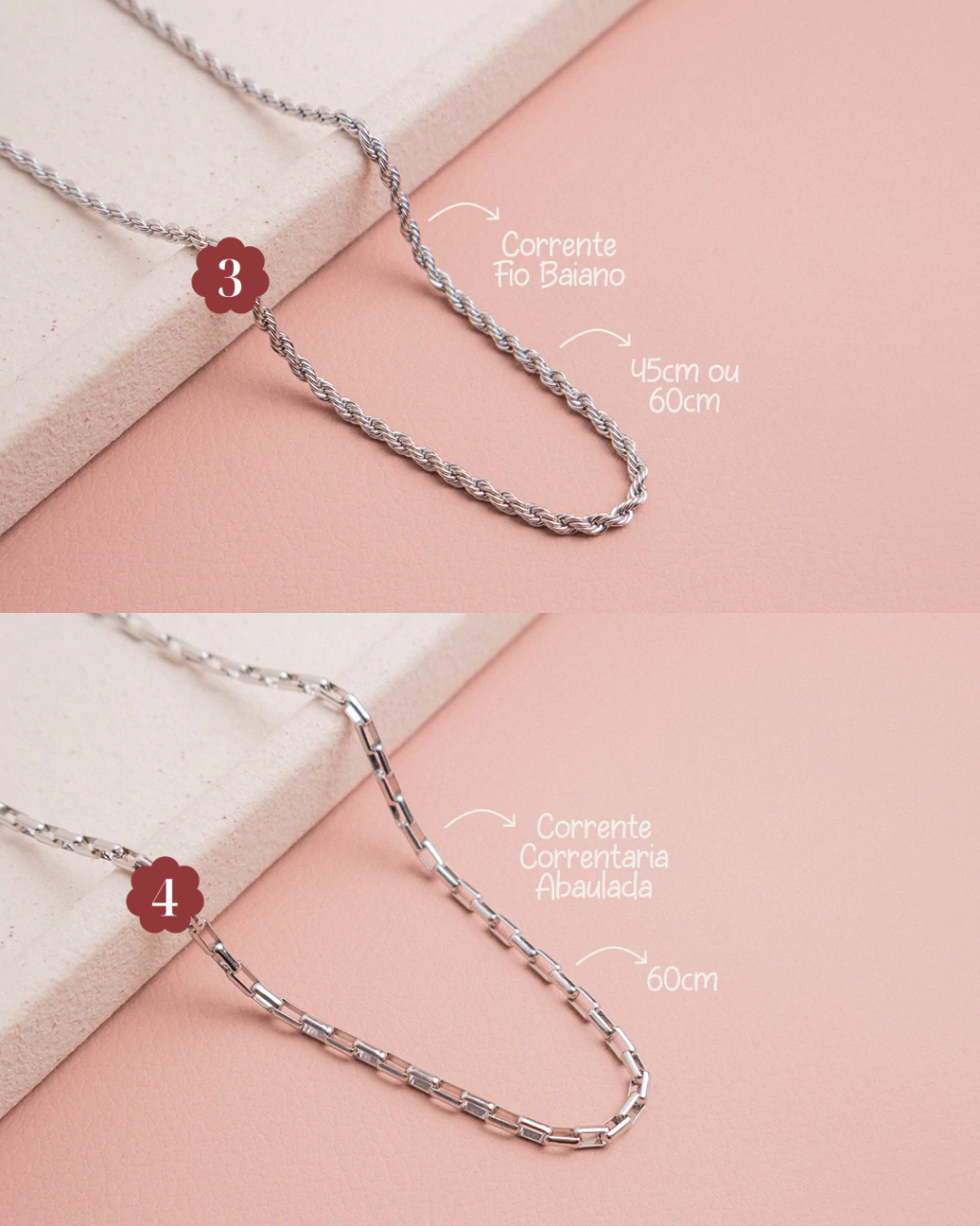 Acessório feito em Aço Inox, resistente a água, anti-alérgico (não causam nenhum tipo de alergia), não escurece facilmente e possue um brilho duradouro.